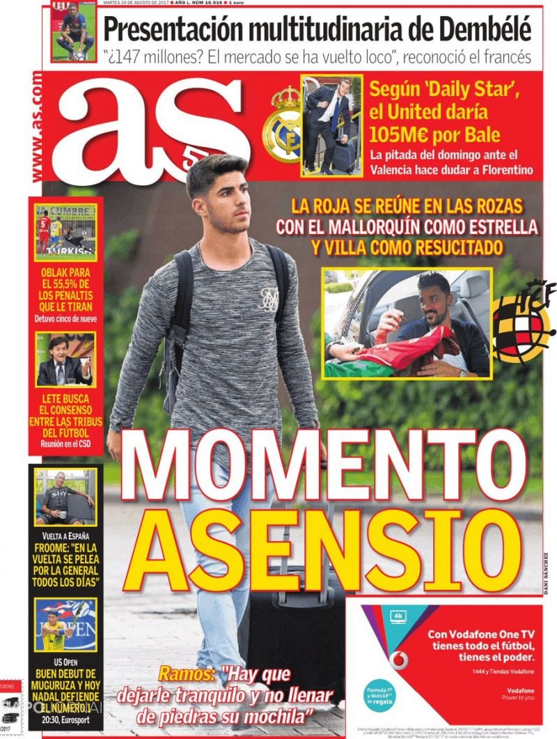 En 'Marca', al menos, lucen a Asensio sin necesidad de apalear a Gareth Bale. Se agradece el detalle, aunque no descartamos que sea flor de un día. Veremos a partir de mañana.