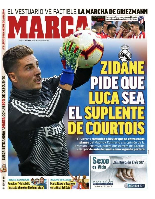 La portada de Marca del pasado 14 de mayo de 2019 pasará sin duda a la historia como una portada francamente desafortunada, sobre todo tras haberse conocido ayer por la tarde que Luca Zidane habia sido cedido al Racing de Santander, y no, como erróneamente afirmaba Marca, se iba a quedar en la primera plantilla del Real Madrid como suplente de Thibaut Courtois.