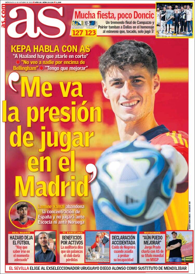 En la ronda de entrevistas rojigualdas del parón, As abre sus puertas a Kepa Arrizabalaga, que habla de Haaland (lo que nos da la pista de que tal vez la llamada Roja juegue contra Noruega), Bellingham (“No veo a nadie por encima de él”, nosotros tampoco) y la presión de jugar en el Madrid, que parece gustarle. A nosotros nos parece que el portero vasco ha encajado como un guante (valga la redundancia) y que lo está haciendo muy bien si uno pasa por alto un defecto que comparte con el resto de guardametas del globo: no ser Thibaut Courtois.