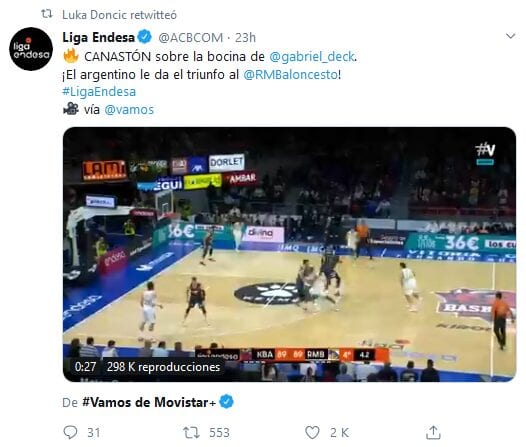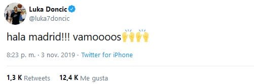 Sí, he escrito madridista. Soy consciente de que Luka juega en Dallas y no en el Real Madrid, pero aun así no he sufrido un lapsus. Unas pocas horas antes de su choque con LeBron, Doncic celebraba efusivamente la canasta de la victoria de los de Laso frente al Baskonia. Apenas habían transcurrido unos segundos y ya estaba su tuit publicado.