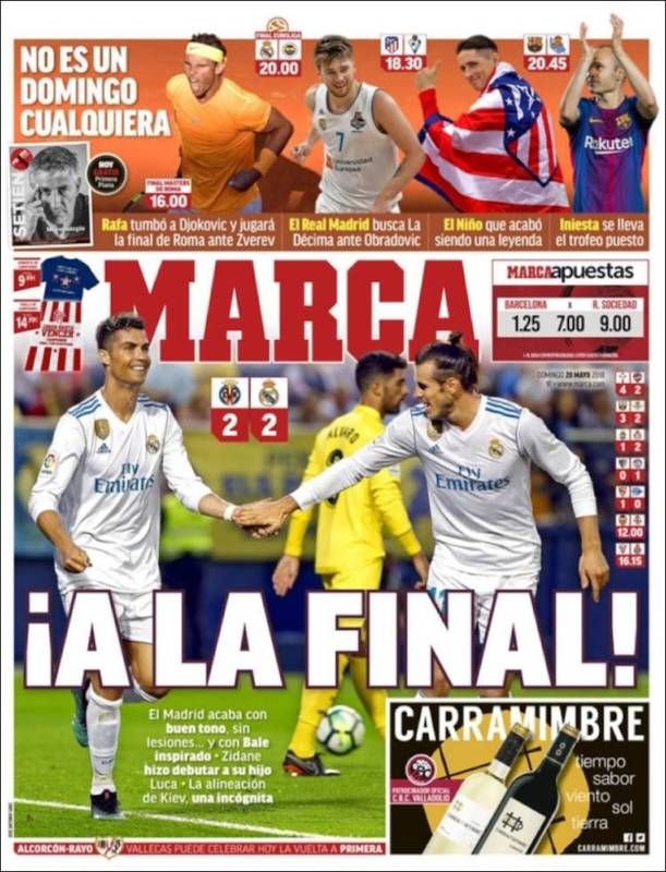 Efectivamente, hoy no es un domingo cualquiera, como bien hace Marca en afirmar en los altos de su portada. Hoy son precisamente los más altos del Real Madrid los que pueden hacer honor a su estatura (no solo física) conquistando la décima Copa de Europa. Ya saben, eso que ahora se llama Euroliga, como en fútbol se llama Champions League, cuando todo el mundo sabe que de lo que aquí se habla es, ya decimos, de la Copa de Europa, nombre que evoca e inspira mucho más que cualquier otro salido de vayan ustedes a saber qué despacho de expertos en imagen, diseño y demás "artes" del siglo XXI.