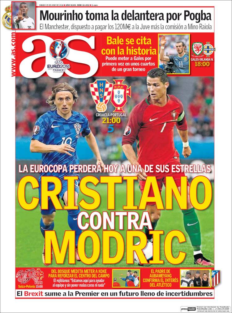 Buenas tardes. Hoy os traemos un portanálisis vespertino para ambientaros en el Portugal-Croacia eurocopero que está a la vuelta de los minutos. Dice As que es un Modric-Cristiano y por primera vez, sin que sirva de precedente, tenemos que dar la razón, a nuestros efectos, al ínclito diario del no menos conspicuo Relaño.