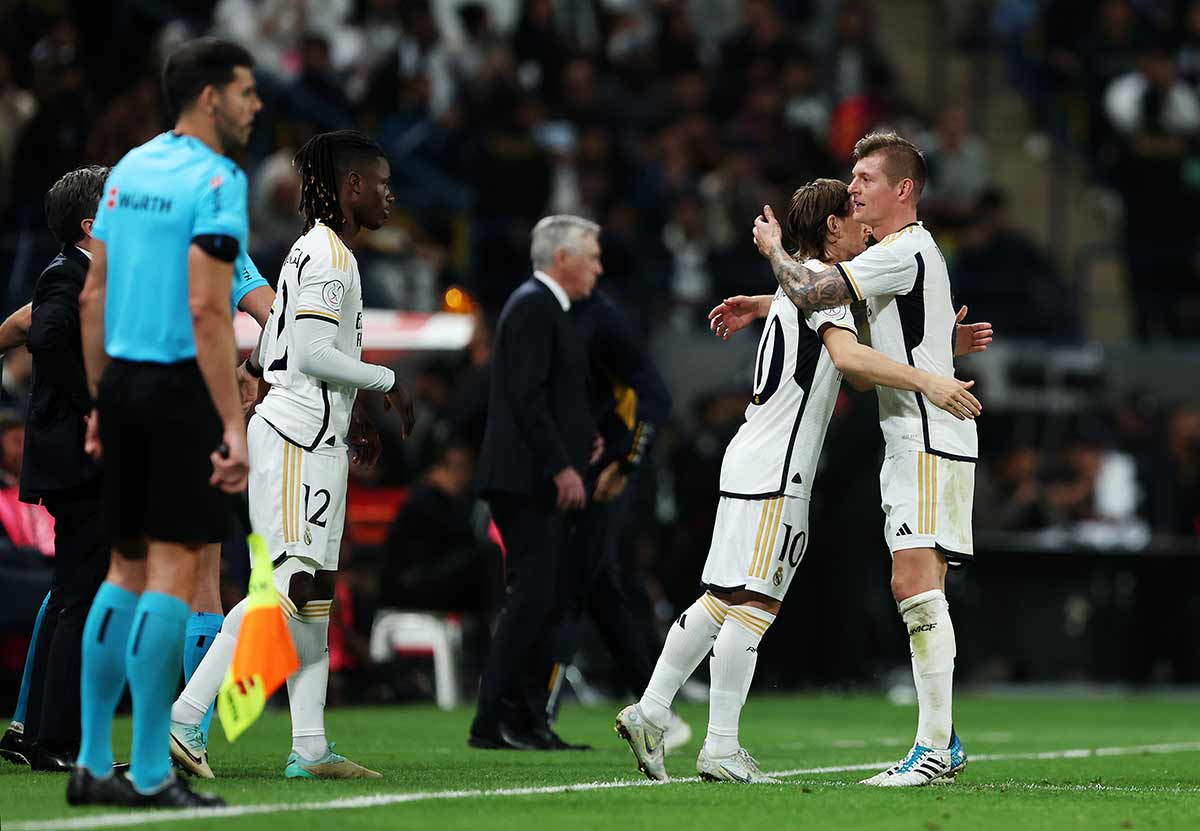 Ahora las circunstancias han vuelto a relegar a Modric al banquillo más de lo que a él le gustaría. Las “circunstancias” incluyen la pila de lesiones y recuperaciones, la majestuosa marcha del equipo, el redescubrimiento del genio Brahim, el nuevo liderazgo de Bellingham sobre el césped, o la enésima juventud del citado Toni Kroos. De modo que los mismos periodistas que lo dieron por muerto a comienzo de temporada —por cierto, los mismos también que, después de otra lección magistral del croata, publican sin rubor “La eterna juventud de Luka” y cosas así—, procesionan con cirios hacia su capilla ardiente, e incluso aventuran cosas tan inverosímiles como que está muy enfadado con Ancelotti, pero que no protesta por no distraer la buena racha del Real Madrid.