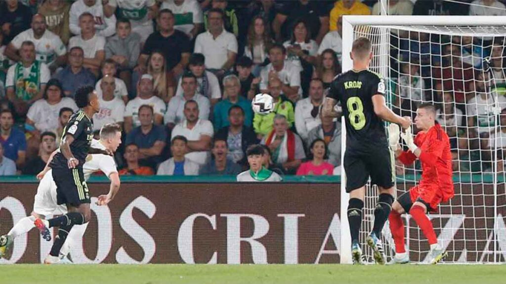 No fue por tanto una balsa de aceite para Lunin, que realizó el trabajo cotidiano con tranquilidad y solvencia y brilló en la tarea extra, es decir, en el gol cantado de Damocles que pende sobre la cabeza del Madrid cada partido. Ayer el encargado de ejecutarlo fue Clerc, de cabeza, pero se topó con un Lunin grandioso que despejó su remate a bocajarro cuando los ilicitanos se relamían con un empate que a buen seguro hubiese cambiado el rumbo del partido, no sabemos hacia qué destino.