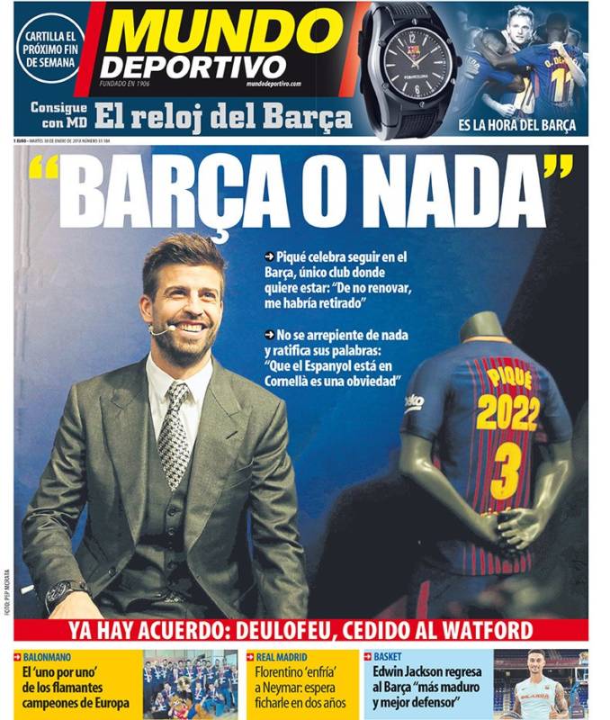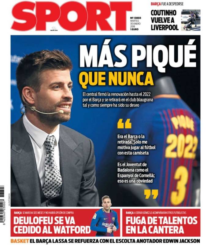 Volviendo a las portadas de la prensa catalana, el protagonista es Piqué, cuya extraordinaria humildad le impide disculparse por su enésimo ataque al Espanyol y a sus aficionados. Le seguirán riendo las gracias. Al menos, si la próxima temporada sigue teniendo la manía de sacar las manos a pasear dentro del área, el VAR hará el trabajo que no están sabiendo hacer los colegiados. Ánimo, Gerard de Tabarnia.
