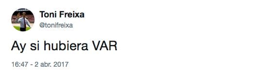 Nos alegramos especialmente por Toni Freixa, que hace casi un año imploraba por el VAR. Su deseo se ha ido enfriando según iban cayendo los favores arbitrales hacia el Barcelona, pero suponemos que seguirá teniendo ganas de disfrutar del VAR y que así todos los clubes de la Liga Santander gocen del mismo trato arbitral.