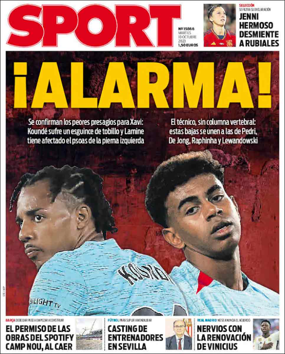 En Sport están alarmados. «¡Alarma!». El estado de alarma se debe a que Koundé sufre un esguince de tobillo y Lamine tiene afectado el psoas de la pierna izquierda, que no es ningún partido político, sino un músculo.