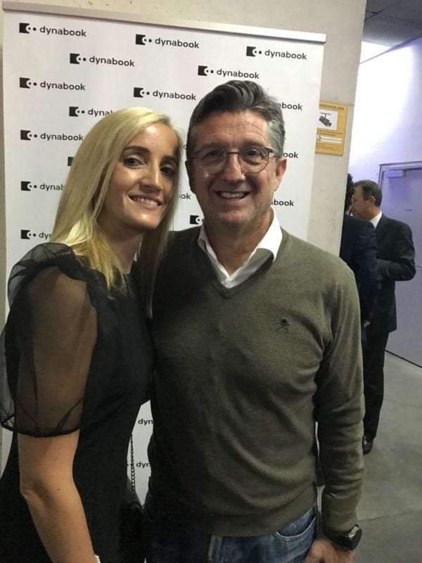 Otros madridistas ilustres presentes en el acto fueron Joe Llorente, Javier García Coll, Edwin Congo, Pedro Luis Jaro y el mismísimo Miguel Porlan Chendo, a quien no pude saludar por entretenerme en exceso con unas croquetas que habrían hecho las delicias de ya saben ustedes quien. Otros que me distrajeron fueron Juanjo, de Los Secretos, y su encantadora mujer Estefanía, amén de los galernautas Ramón y Barney. Hay que dar por bien empleados a los amigos hasta cuando te distraen de saludar a Chendo, sobre todo si el despiste tiene lugar en el muy placentero ágape posterior a este muy entretenido acto de lanzamiento de Dynabook (otrora Toshiba), marca a la que también yo deseo lo mejor.