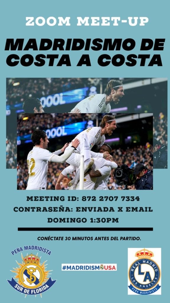 Ayer, durante los 90 minutos del partido, olvidé un poco ese dolor que me invade y desgarra. Grité el primer gol junto a mi hijo como si se tratase de una final de Champions. Un grito de rabia, de desahogo, de felicidad. PORFIN regresaba lo más importante de las cosas menos importantes. El equipo de mi vida, de mis amores. Y lo hacía marcando un gol nada más empezar el partido. Debido a las cifras de contagios en Florida la junta directiva de la peña votó no reunirnos en nuestra sede oficial ya que no dispone de terraza para poder sentarte afuera. Decidimos seguir el partido reunidos vía Zoom, junto a la Peña de Los Ángeles. Madridismo de costa a costa. Durante 90 minutos compartimos, gritamos, nos reímos y recuperamos un poco de “normalidad” después de tantas semanas de tristeza.