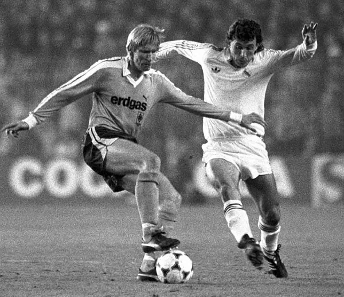 Me contó Javi que Valdano relató ciertas anécdotas de aquella estruendosa remontada al Borussia Monchengladbach en la Copa de la UEFA, partido al que acudimos los dos aprovechando el pase de pernocta que nos brindaba el ejército. Parece que Valdano contó “lo del gol de Santillana”. Me acuerdo perfectamente al cabo de casi cuarenta años. El Madrid, Santillana, claro, mete con no sé qué el gol que daba el pase a la siguiente ronda en el último minuto (faltaría más). En medio de la explosión de júbilo, de los abrazos y de los llantos, vimos a Valdano correr desaforadamente por el campo en vez de ir a aplastar al pobre Charlie, que sólo podía intentar respirar a duras penas. Corría y corría sin sentido. Nosotros nos dimos cuenta y gritamos “¿¿¿Pero adónde va ese loco???”. Menos mal que el portero, Ochotorena, le paró en seco con un abrazo, que, si no, aparece en Cibeles antes de tiempo.