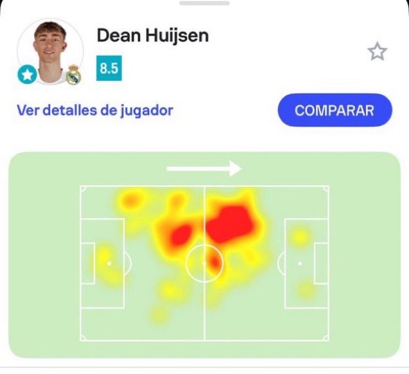 Respecto a la gran ilusión que está despertando en el madridismo Huijsen, no podemos estar más de acuerdo. Está deslumbrando desde su faceta de defensa que ejerce de centrocampista, o viceversa. Precisamente, nuestro amigo Jorgeneo dio con la bella coincidencia entre su mapa de calor ante Osasuna y el de Toni Kroos en cualquier partido random del año pasado. Con ello no se pretende comparar ambos futbolistas (Dean apenas está empezando), sino señalar hasta qué punto el espigado hispanoholandés representa en el equipo un rol que trasciende el de simple marcador en área propia.