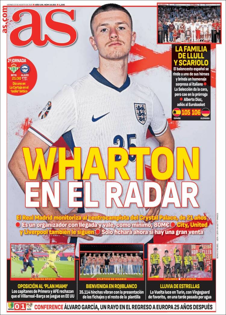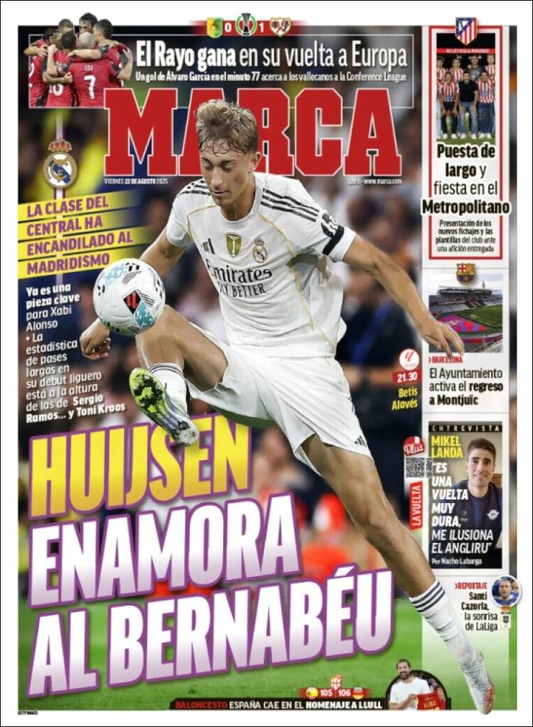 Las portadas de la prensa madrileña deportiva del día dan cuenta del gran evento en pequeños espacios colaterales, reservando los espacios centrales al hipotético interés del Madrid por Wharton (Crystal Palace) y al gran rendimiento que está dando Huijsen.