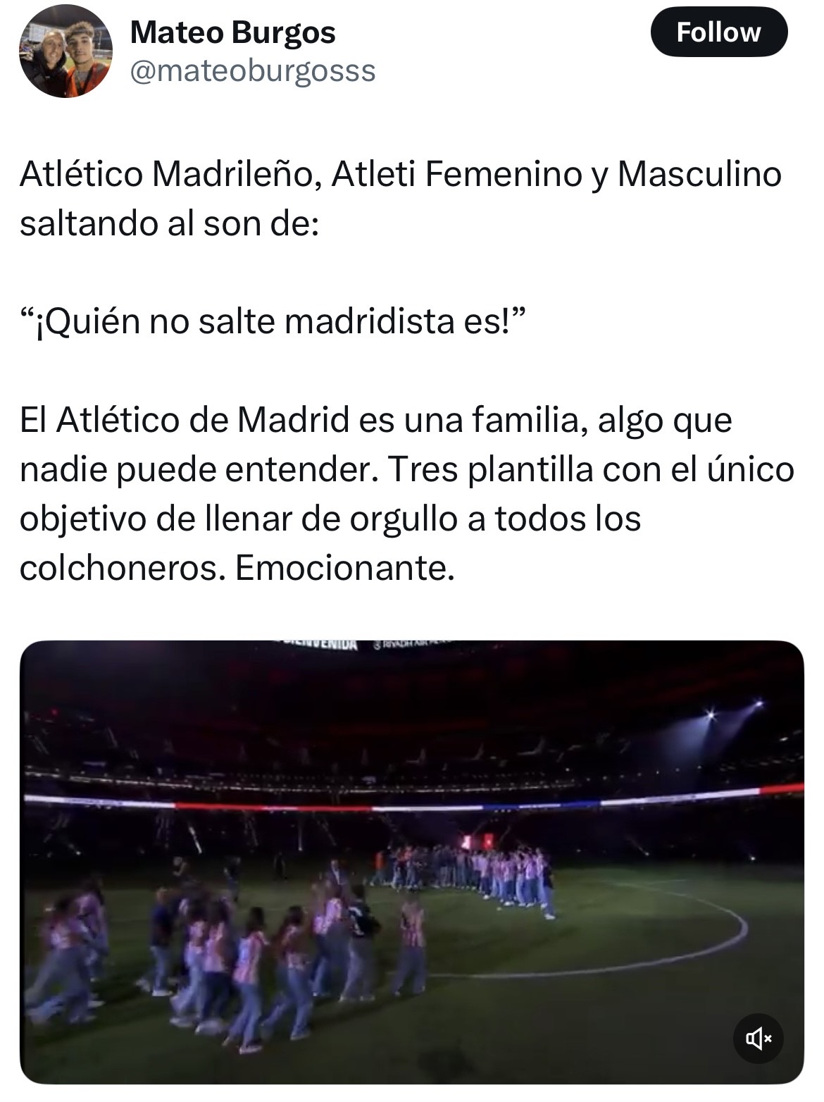 En efecto. Allí se congregó una afición  deseosa de mostrar en todo momento un  apoyo sano y limpio a los suyos, lo que como vemos, en términos atléticos, se traduce en ciscarse en el Real Madrid, que (no) pasaba por allí. No solo el público coreó el ejemplar salmo “Madridista el que no bote”, sino que los propios jugadores colchoneros de las tres plantillas reunidas (primer equipo, segundo y sección femenina) votaron al uníson, para demostrar al respetable que eran sensibles a esa proclama, y dejar claro que el sambenito del madridismo no podía en ningún caso aplicárseles, no fuera a ser que el grupo de animación nazi Frente Atlético tomara nota de quién estaba botando y quien no, corriendo el riesgo los segundos de asumir correctivos tan severos como el que estas encantadoras criaturas son capaces de infligir.