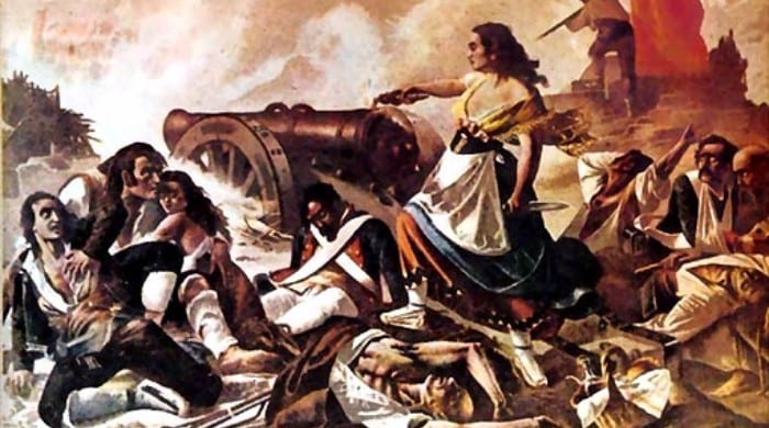 La cuestión es que cuando Agustina llegó a Zaragoza, el equipo galo estaba abusando del juego sucio, y así había conseguido lesionar, expulsar o inutilizar a la mayoría del equipo maño, de manera que en el estadio de la Romareda se daba una aplastante mayoría de franceses. En el banquillo aragonés no quedaban jugadores disponibles, así que la audaz Agustina saltó al campo sin pensárselo dos veces, besó el escudo, se colocó al pie del primer cañón que vio, agarró la mecha y repartió candela a diestro y siniestro; lo que se llama “derribar la puerta”. En palabras de don Lucas: