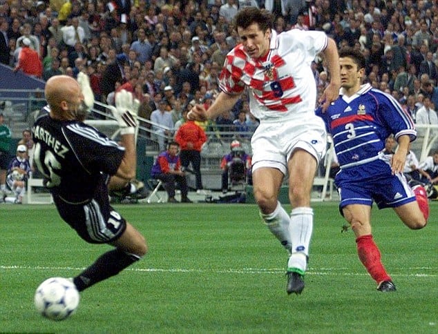 Por su parte, Suker brilló durante un mes ante los ojos de medio mundo con una actuación sensacional. Estrella croata, fue el máximo realizador con seis dianas y aupó a Croacia a un tercer lugar histórico. Debutó con un tanto ante Jamaica y también dio el triunfo unos días más tarde ante Japón. Frente a Argentina su pólvora se mojó pero en octavos desde los once metros batió al rumano Stelea y colocó a Croacia en cuartos. Pocos les daban por ganadores de ese choque contra Alemania, pero guiados por Suker, que consiguió el tercer tanto, barrieron a los germanos en Lyon. En las semis viajaron a París para jugar contra Francia, a la que tuvieron contra las cuerdas. El delantero zurdo silenció Saint Denis tras superar a Barthez, pero dos dianas de Thuram acabaron con el sueño croata. En el Parque de los Príncipes se vieron las caras con los Países Bajos y de nuevo Suker fue decisivo con una diana para adelantar a Croacia después del empate de Zenden y acabar en el podium del Mundial de Francia.