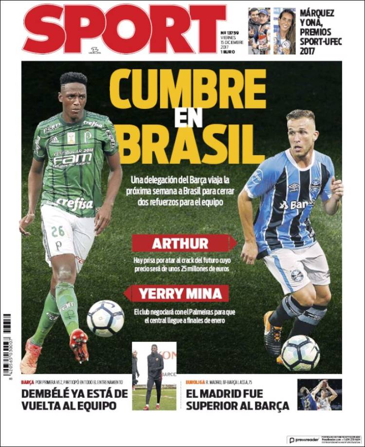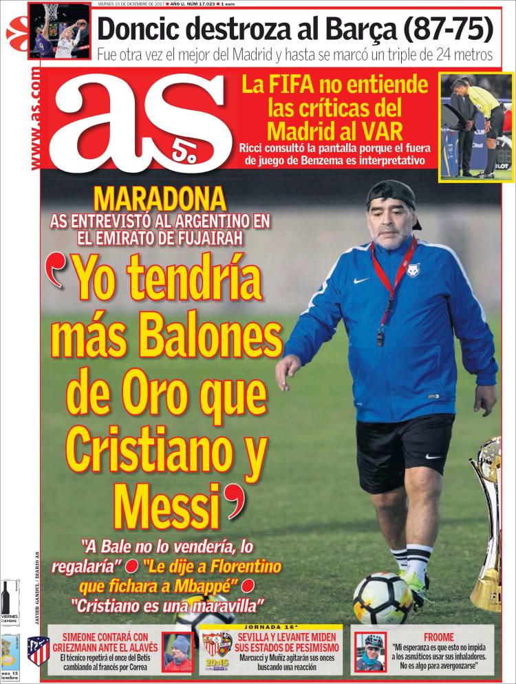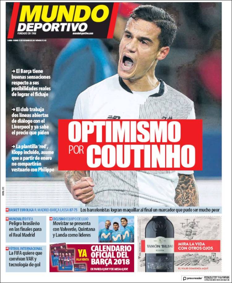 Os dejamos con el resto de portadas del día. El Madrid, por cierto, también está en Abu Dhabi, y se prepara para volver a ser Campeón del Mundo.