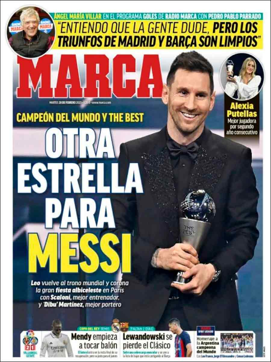Buenos días, amigos. Si la FIFA entregara un premio The Best a la mejor portada, sin duda sería para Marca. El problema estribaría en discernir cuál de ellas sería la galardonada: ¿la que ponía a Vini en el foco, la de la prohibición de acceso a los estadios de los rivales con sus enseñas, la de Gil Marín, la de hoy de Villar?