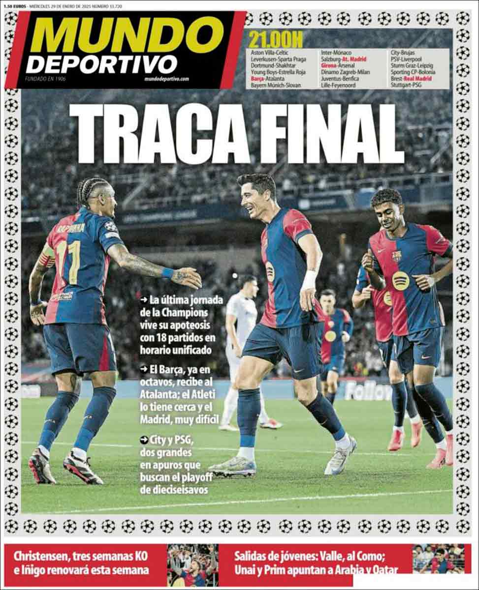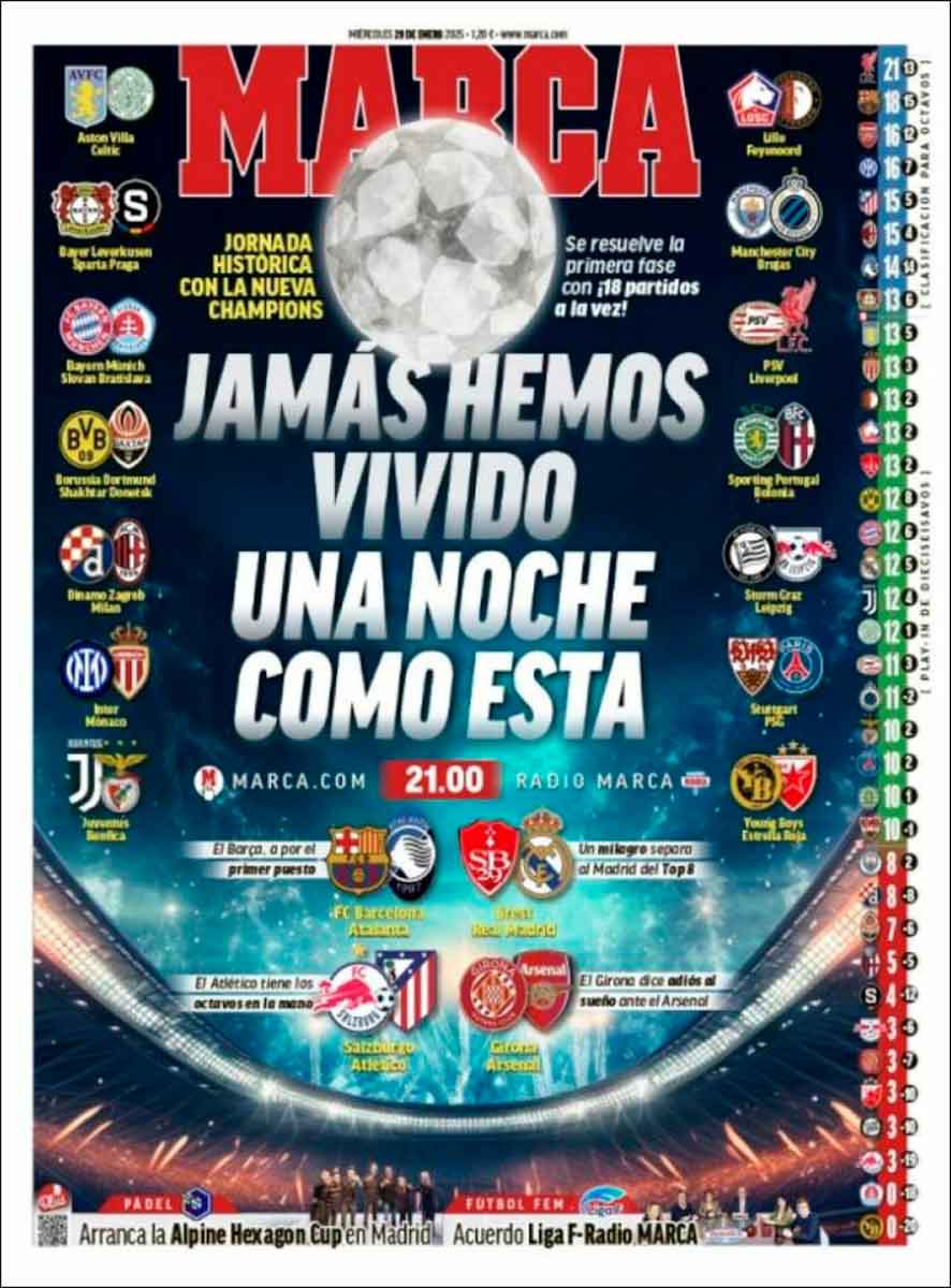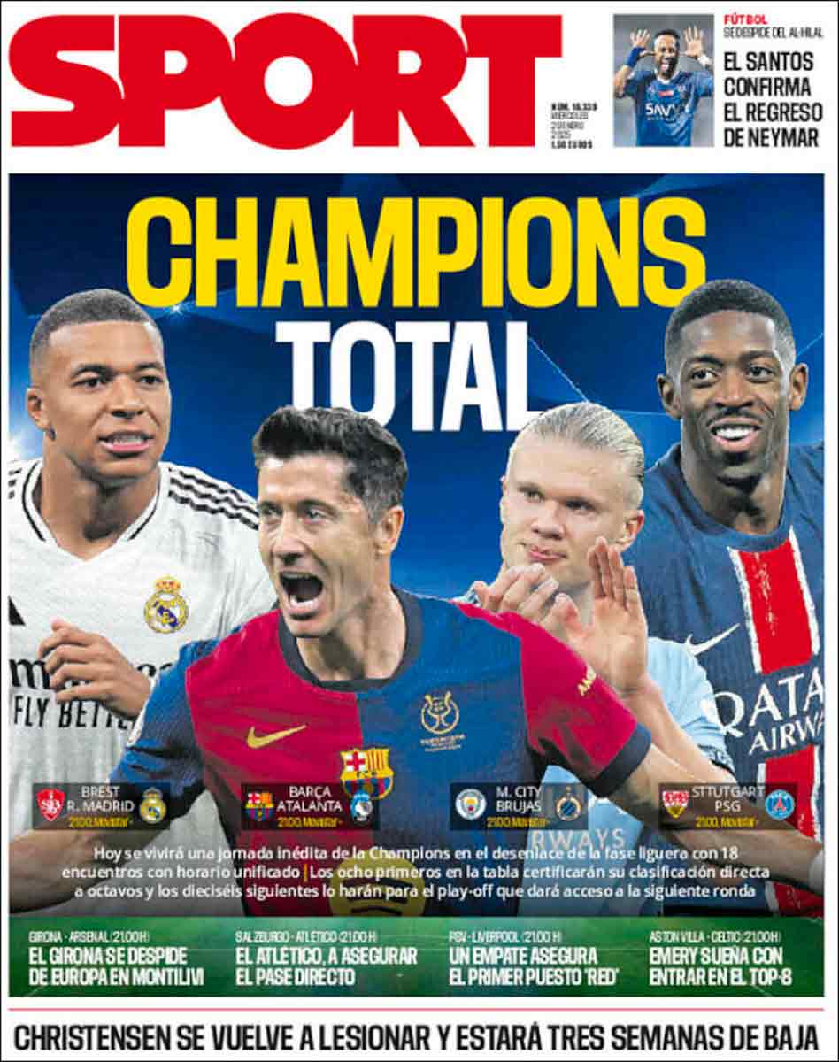 Os dejamos con las primeras planas del día. No traen nada que no sepáis ya. A las nueve de esta noche se juegan su destino europeo todos los equipos en la Champions League. Lo hacen el mismo día y a la misma hora para evitar potenciales biscotos, a pesar de que hay equipos (el Madrid incluido) que no saben si les interesa ganar o no, porque no saben si escalar en la tabla puede conllevar afrontar después cruces menos ventajosos, paradójicamente. El sistema es un descalzaperros, aunque observaréis que la prensa lo vende como una maravilla. No en vano también existe la conexión prensa-UEFA, especialmente en el caso de Marca, compañero de pádel de Al Khelaifi como es público y notorio.