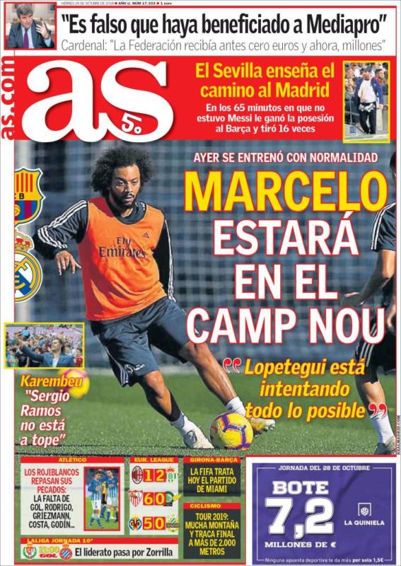 El que sí aparece en la portada de la Ouija es Marcelo, detalle que es casi de agradecer desde el momento en que la profesión periodeportiva ha dictado sobre el lateral brasileño una figurada fatwa por haber osado enfrentarse a ellos.