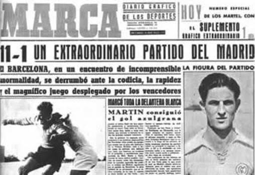 Me contaba a menudo mi Mamá que ella tuvo la suerte por ejemplo, estando aún de novios con mi padre, de asistir a la que hasta hoy es la mayor goleada jamás habida entre el Madrid y el FC Barcelona, un 11-1 inigualable allá por la primavera de 1943, el 13 de junio, festividad de San Antonio - día de la madrileñísima tradición de los alfileres de San Antonio de la Florida -. Aún hasta hace poco ella me recordaba la alineación de aquél día: Marzá; Querejeta, Corona; Barinaga, Sauto, Moleiro; Chus Alonso, Ipiña, Alsúa, Botella y Pruden. 8-0 al descanso y los goleadores fueron Sabino Barinaga (4), Alonso (2), Botella y Alsúa. Sólo suman ocho me dirán ustedes. Y es que los otros tres fueron obra del jugador favorito de mi madre, el gran Pruden Sánchez, 5 temporadas en el Madrid en las que anotó 87 goles.