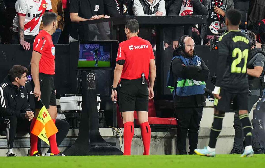 En el minuto 3 pintaba bien con la amarilla a Catena porque parecía que iba a castigar a los locales. Falsa ilusión. Trejo hizo tres faltas en 10 minutos y no vio tarjeta. Sí la vio Vinicius que tuvo que aguantar patadas, provocaciones, empujones y hasta golpes en la cara. Balliu pudo irse a la calle en el 27' pero ni amarilla. Fran García también se libró por un planchazo a Valverde en el 31'. Resumen de la primera parte: 15 faltas vallecanas y 6 merengues. Las mismas amarillas.