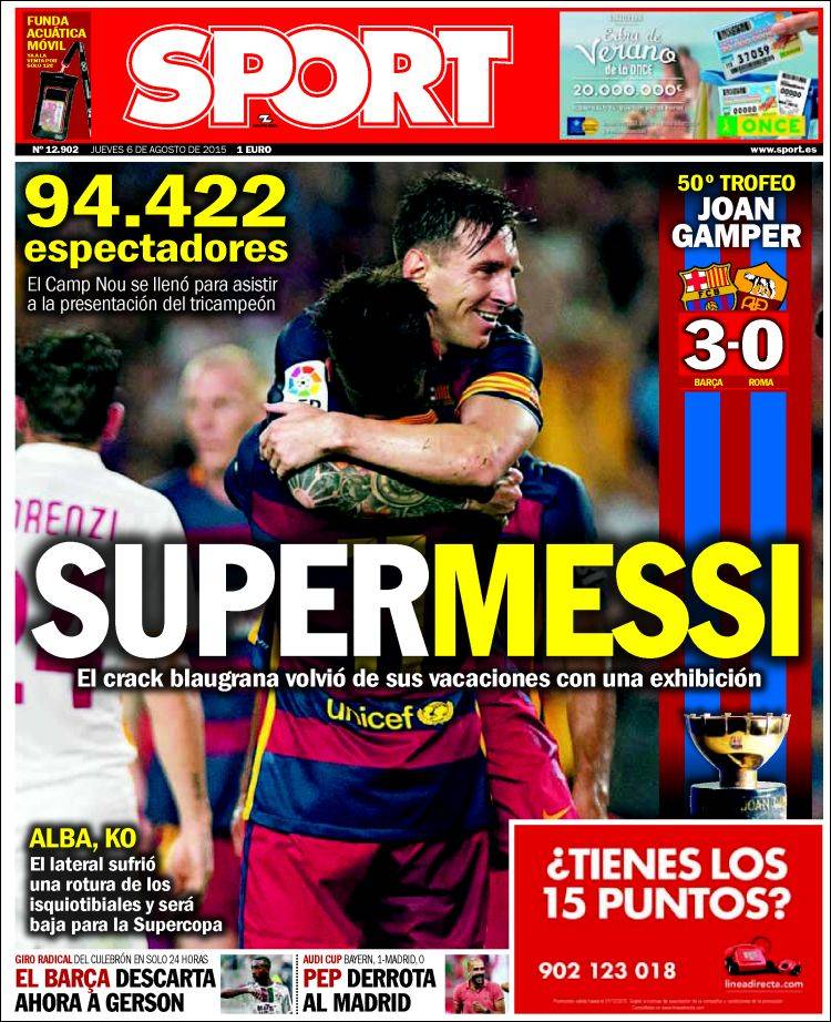 Si MD se luce con lo de “Lewansdowski, la pesadilla blanca", Sport no se queda, ni con mucho, atrás con ese maravilloso "PEP derrota al Madrid". Lo que hay que ver!!