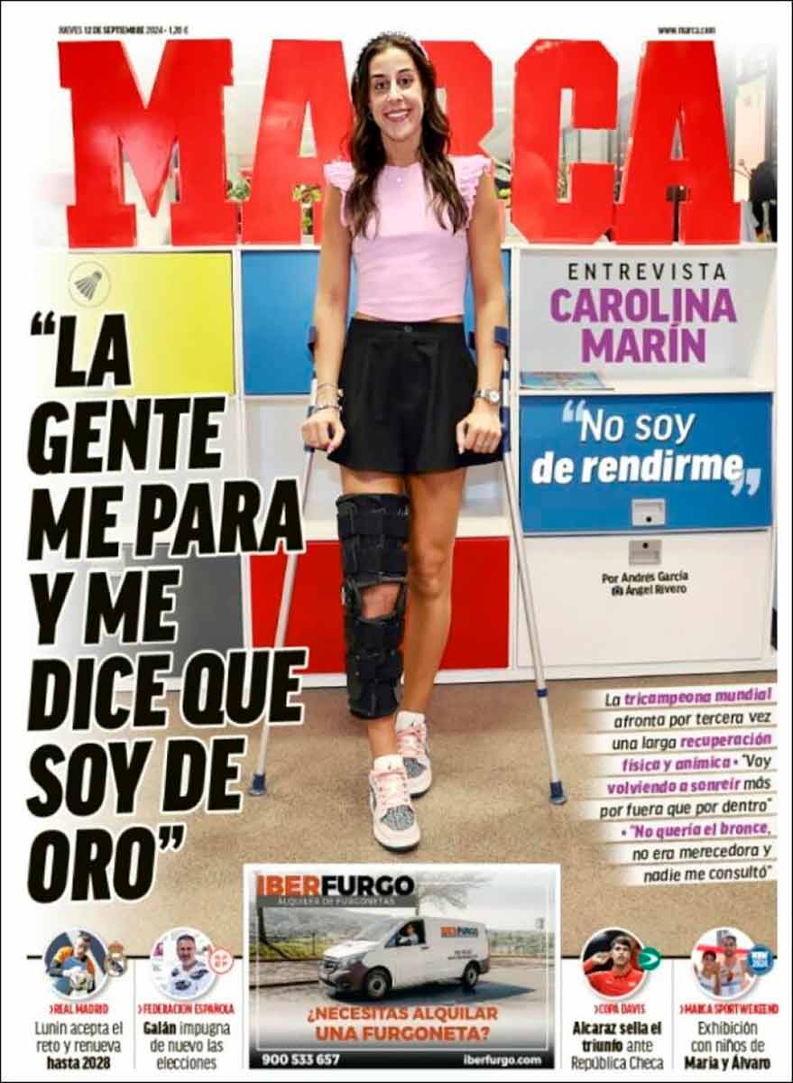 En Marca hoy no tocaba acosar a Vinícius ni pergeñar portadas eméticas y han preferido centrarse en la gran Carolina Marín, que afronta su tercera larga recuperación tras la última lesión de gravedad. Desde La Galerna nos sumamos al apoyo a esta gran campeona.