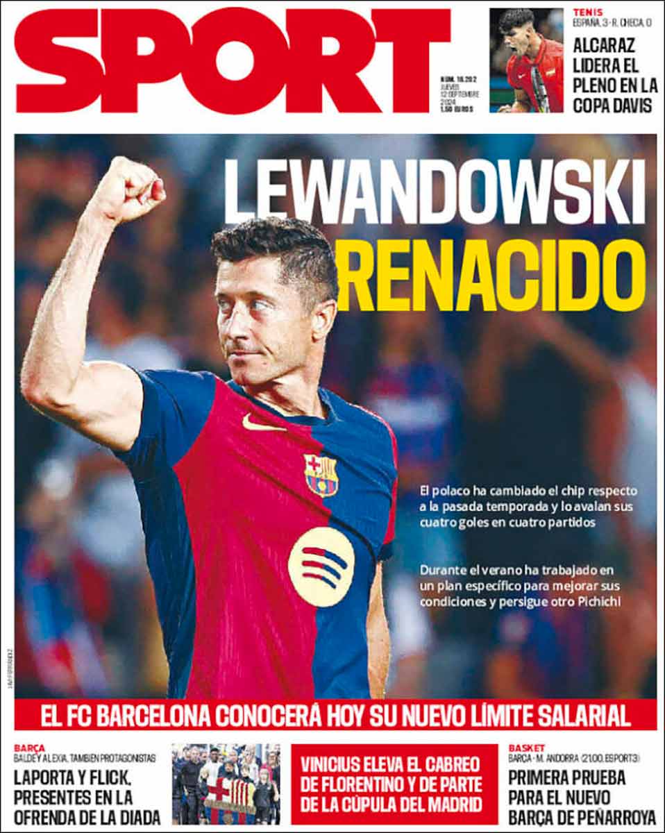 En la parte superior de Mundo Deportivo y en la inferior de Sport se habla de la presencia de Flick en la Diada catalana.