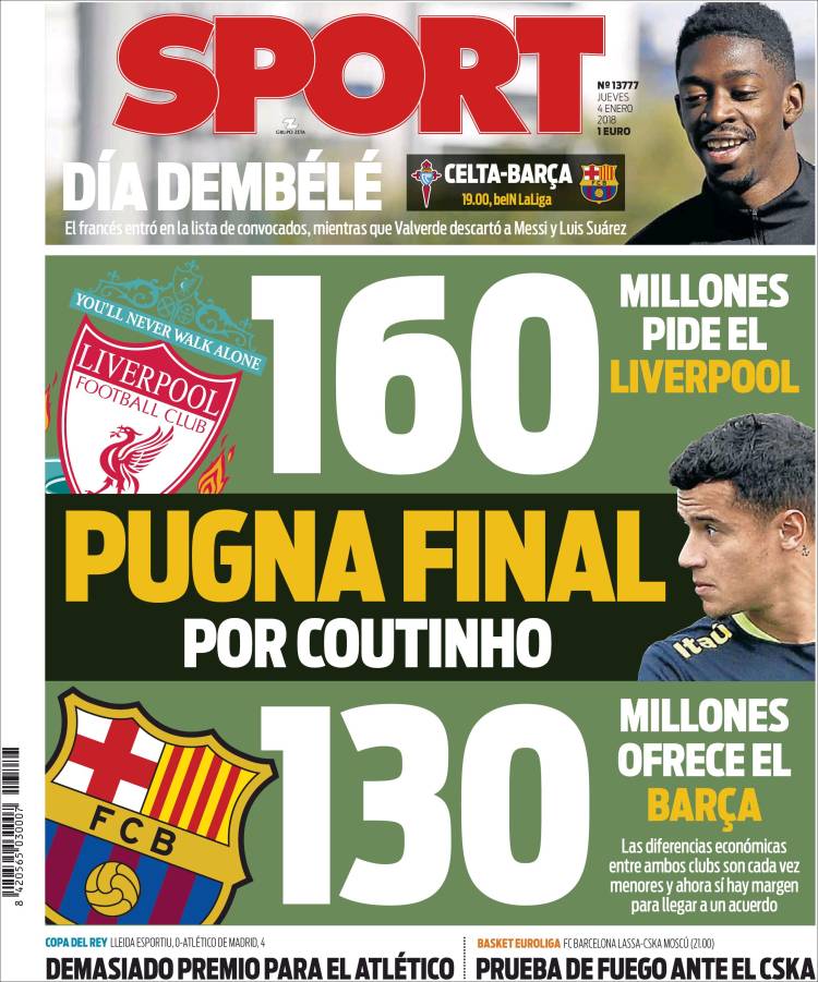 De hecho, más allá de la matraca de Coutinho, que lleva fichando por el Barça desde su salida del útero materno, la principal novedad en portada la presenta Sport con su exclusiva con Steve Urkel como nuevo embajador del Barça.