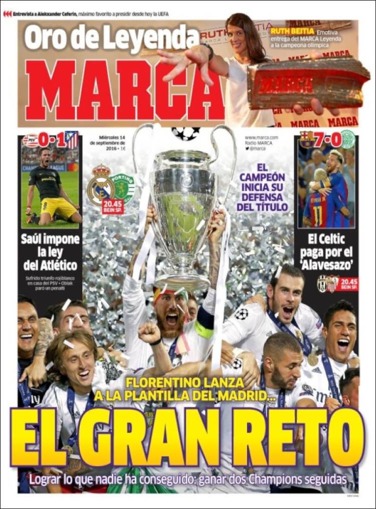 Hoy regresa el campeón a la competición más prestigiosa del fútbol mundial y creemos que éste resulta en motivo suficiente para copar cualquier primera plana de la prensa deportiva que se precie de ser precisamente eso, deportiva. Mucho pedimos ya lo sabemos, acostumbrados como estamos a rebotar cual pelotas de pinball en paredes acolchadas, embutidos en camisas de fuerza en el frenopático mediático diario.