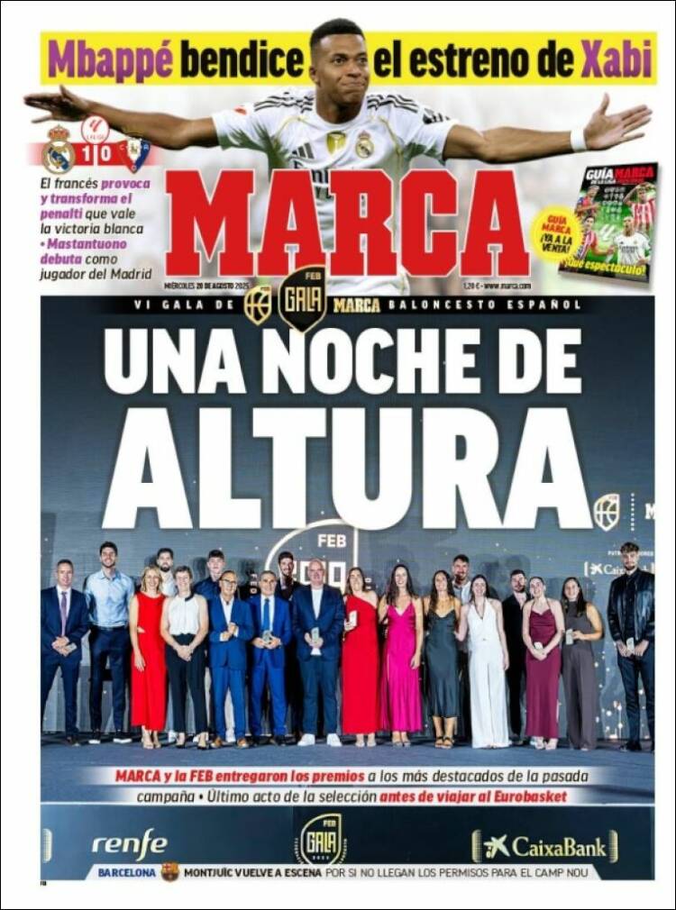 As destaca al francés, aunque su portada omite destacar también a otros jugadores que estuvieron de notable, como el formidable Carreras o el cada día más confiable Huijsen, que no solo saca el balón de atrás como los ángeles sino que también se faja con un jabato a campo abierto. A otros, como Trent y Güler, se les vio más tímidos y menos diferenciales, pero estuvieron voluntariosos en todo caso.
