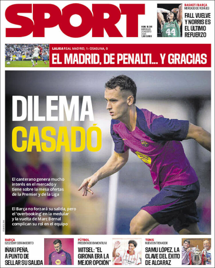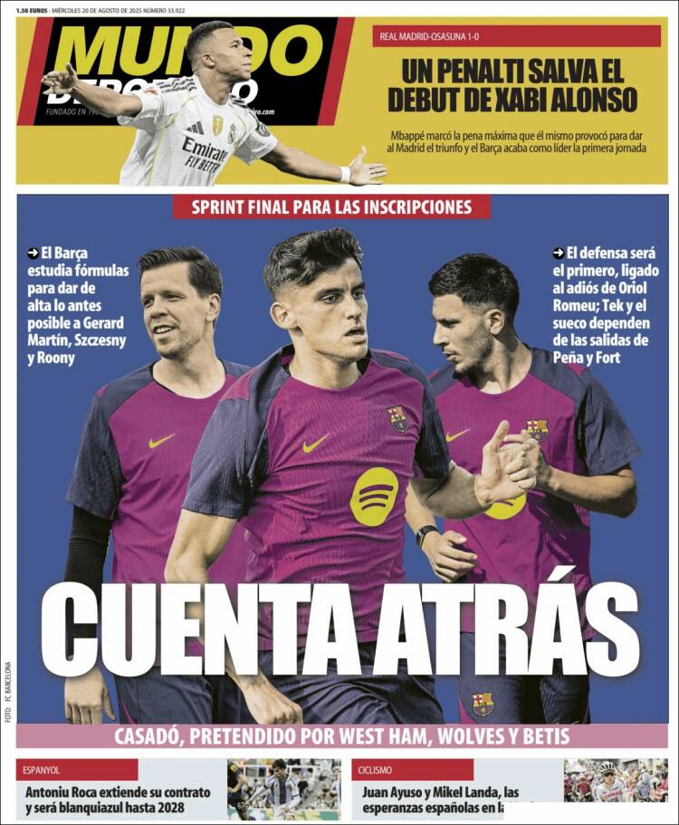 El resto de portadas del día tienen que ver con la gala de Marca, diario de todas las aficiones menos de una y sobre todo diario de Javier Tebas, y con las inscripciones culés, siempre tan azarosas, emocionantes (?) y resueltas en el último minuto. Las inscripciones culés son sus remontadas de Champions.