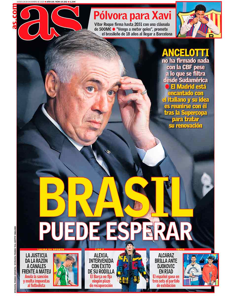 As opta por centrar su atención en don Carlo: «Brasil puede esperar». Y París también, incluso el cielo puede esperar, pero el Madrid es el Madrid, y Ancelotti, que de tonto no tiene un pelo, lo sabe.