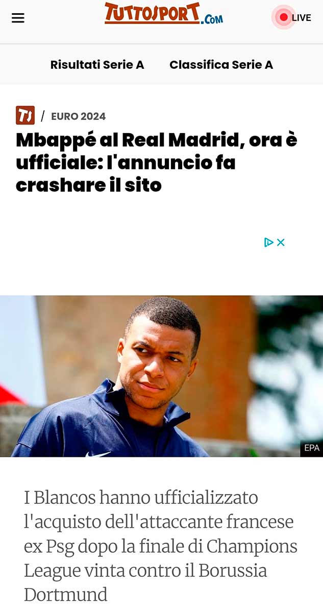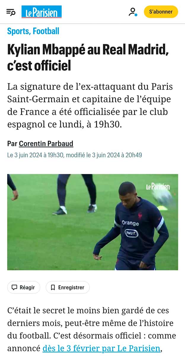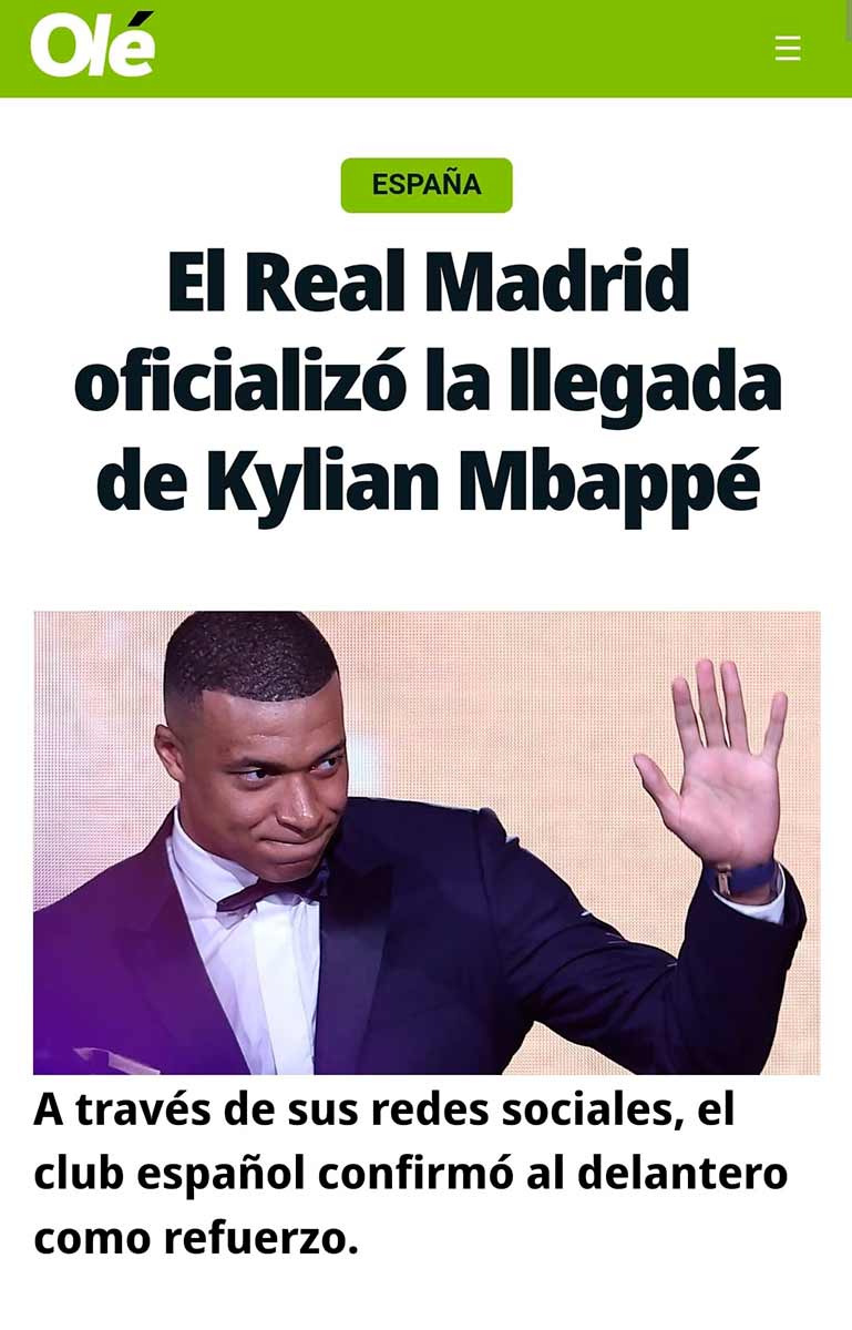 Cuando el club más grande de la historia contrata a un futbolista de la magnitud de Mbappé, la repercusión es universal, como el madridismo sociológico. A estas horas, el comunicado oficial del Real Madrid, el vídeo publicado por el club, la noticia en los diferentes medios, las reacciones en redes sociales, acumulan más visitas que habitantes tiene el planeta, de lo cual se deduce que hay señores en Marte, señoras en Venus y pingüinos en los anillos de Saturno que también han devorado todo lo publicado hasta ahora sobre la simbiosis de ambas marcas.
