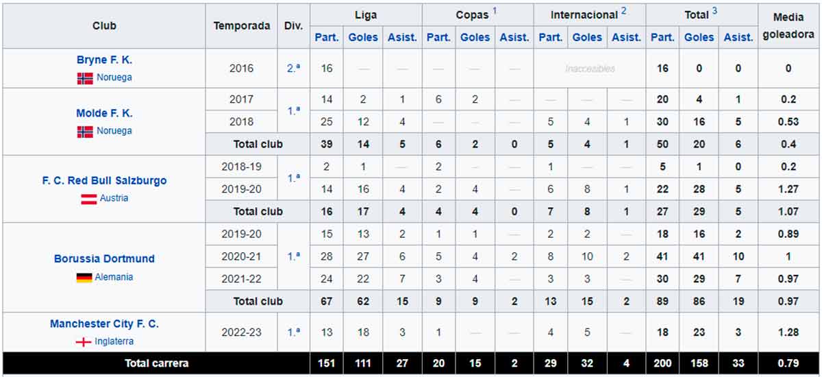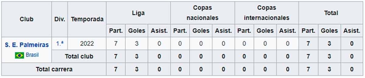 Y ya, en su Wikipedia, la Biblia del jugador de fútbol, sus estadísticas son estas. No hay más. Haaland va con motosierra y Endrick, de momento, solo tiene un cortaúñas.