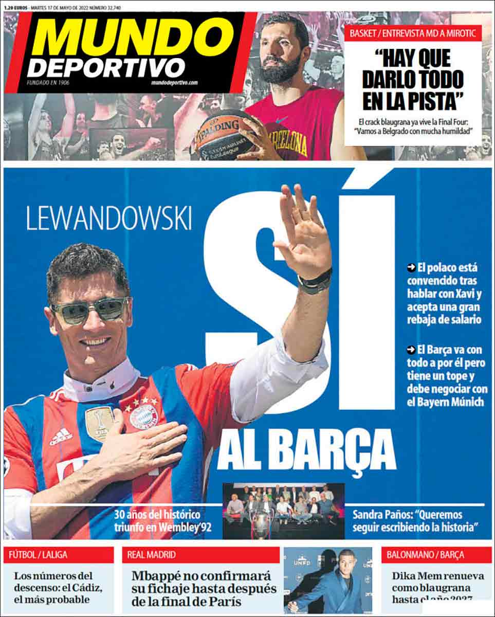 5. ¿Lewandowski quiere cambiar el Bayern por el Barça y encima cobrando menos?¿Dónde está el truco? No me lo creo.....Saludos amigos madridistas y HALA MADRID