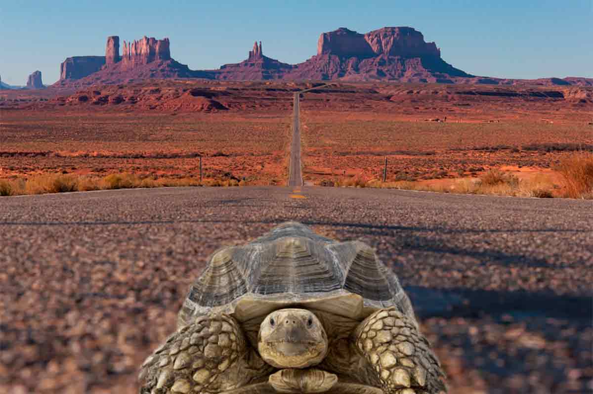 El sol mezclaba la carretera con el horizonte en un charco de luz. John Backman comenzó a ver una tortuga delante de él e intentó alcanzarla. La tortuga cada vez andaba más lenta, pero John cada vez se alejaba más de ella.