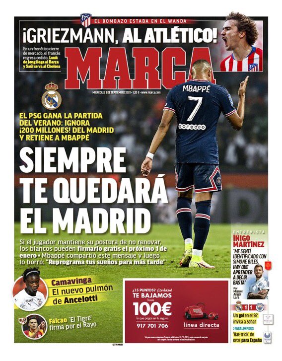Que no haya venido Mbappe no es el fin del mundo. Al fin y al cabo, para cuando llegue enero, los chicos de la prensa podrán recuperar el culebrón.