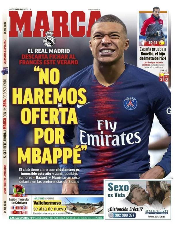Mbappé no va a venir. Marca vende (al menos en este caso) verdad. As vende ilusión contraproducente, caballos de Troya en forma de fes baldías.