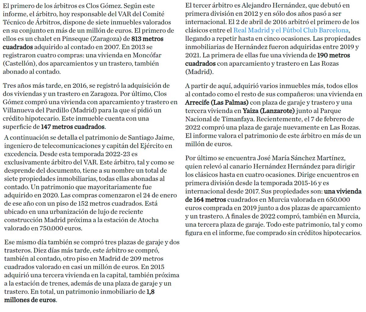 A través de este artículo anterior de El Debate podéis conocer de primera mano los aumentos patrimoniales negreiriles de estos sujetos, todos los cuales siguen en el elite arbitral a día de hoy y uno de los cuales dirige nada más y nada menos que el VAR.