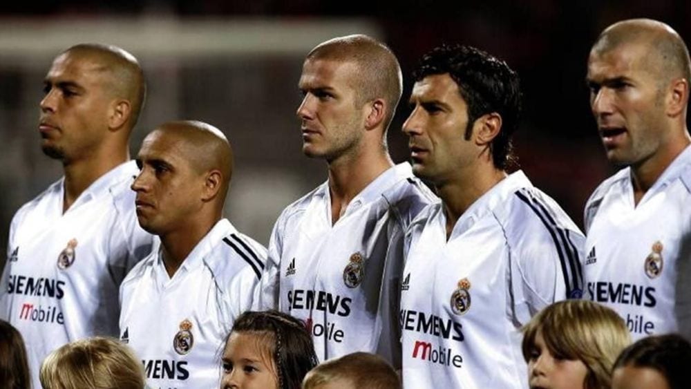 Comenzando por orden cronológico, el Madrid de los Galácticos es seguramente el que mejor compendio de súper estrellas juntase sobre el campo. Zidane, Ronaldo, Figo, Beckham… suponían un plantel de cracks difícilmente igualable en el panorama mundial. Como los Globetrotters, el día que estaban inspirados lo que se veía en el Bernabéu era auténtica magia. La velocidad de Roberto Carlos por banda, la elegancia en los controles de Zizou, el golpeo de pelota de Becks, los amagos de Figo, la hiperactividad de Rulo o los goles de Ronnie elevaron al Madrid a algo nunca visto. Pero el equipo se limitaba a ser una superposición de estrellas. Juntaba partidos en los que su fútbol era exquisito pero jamás hubo un sustento táctico suficiente detrás que permitiera sobreponerse a un bajón de rendimiento. Y cuando ese bajón, por diversos factores que serían objeto de otro debate (lesiones, falta de clase media en la plantilla, etc.), llegó, el cuadro merengue se fue diluyendo.