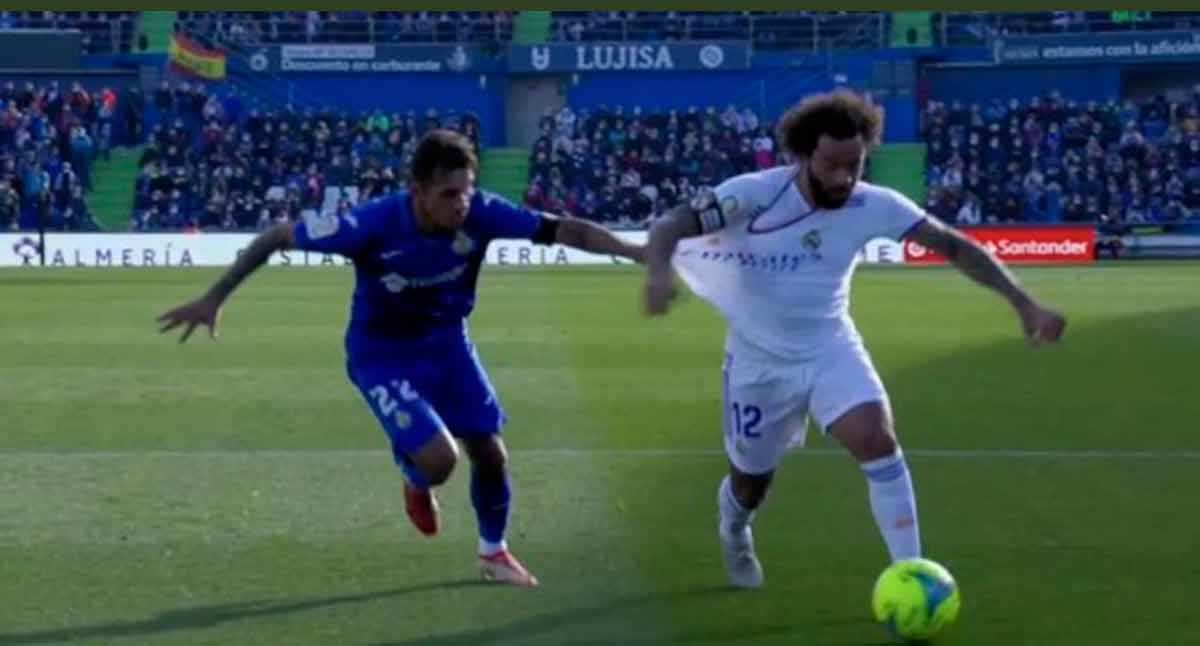 Marcelo se para en cuanto le agarran la camiseta podia seguir corriendo y la entrada no era para tirarle, cuantas veces he visto que a Butragueño le agarraban de la camiseta y aunque se quedaran con ella en la mano seguia corriendo y ni protestaba. Ahora parece que los futbolistas son de mantequilla de Soria hay que jugar con mas ganas no con el nombre y ademas si el Real Madrid protesta por una jugada puntual mal vamos cuando se da el caso que algun jugador gana mas que toda la plantilla del Getafe junta. Hay que saber perder y si el Real Madrid no le mete 4 sl Getafe como protestar por un agarron de un segundo y decir que por eso no gana ell Real Madrid apaga y vamonos.El Real Madrid no gano por que no supo jugsrle al Getafe y el Getafe si supo jugarle a el y dejemonos de chorraditas que tampoco le hicieron tantas faltas