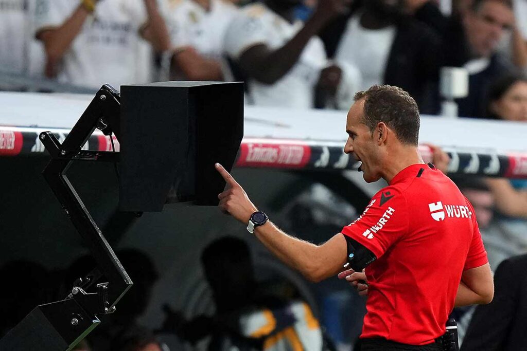 En el 13' el Getafe reclamó penalti de Carvajal por mano pero lo cierto es que le da en el hombro y la manga, lugares no punibles. Once minutos después el colegiado señaló los once metros tras caer Bellingham. En directo parecía que no había duda ninguna pero el VAR reclamó su atención. En las repeticiones se aprecia que Aleñá con su pierna izquierda no impacta en Bellingham y el inglés arrastra y dobla su derecha para dejarse caer. Bien el aviso de Munuera Montero porque no era penal. Sí lo fue y muy evidente el de Djené en el minuto 41' sobre el inglés, al que barre cuando giraba en el área. Otra jugada a peritar es la mano fuera del área de David Soria en el minuto 17'. El portero toca el balón con el muslo y luego le da en el brazo de rebote, pero este se encuentra abajo y no extendido, en posición natural y sin que fuese punible para mostrar falta y roja al cancerbero azulón. Por último, el gol de Joselu en el 47' quedó en un impás durante unos minutos. Parecía que se miraba un fuera de juego del gallego al que podía habilitar Djené pero nunca vimos las líneas. En la TV se indicó que al tocar el togolés era otra jugada y por eso valía el tanto del delantero madridista, cuya intervención fue tras el despeje (con la mano) del defensa.