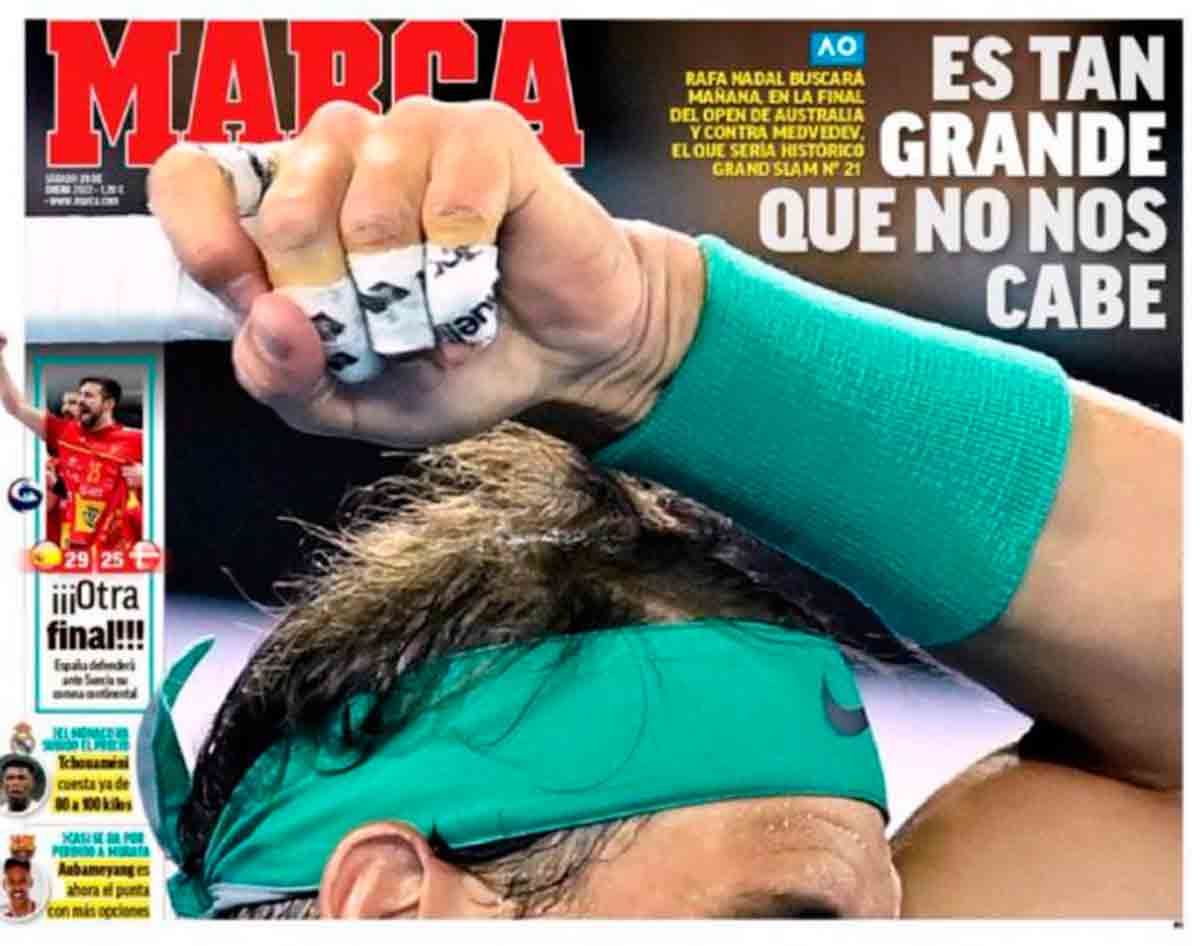 Por eso decimos que menos mal que nos queda Nadal. El tenista manacorí es tan grande que no cabe en la portada de Marca.