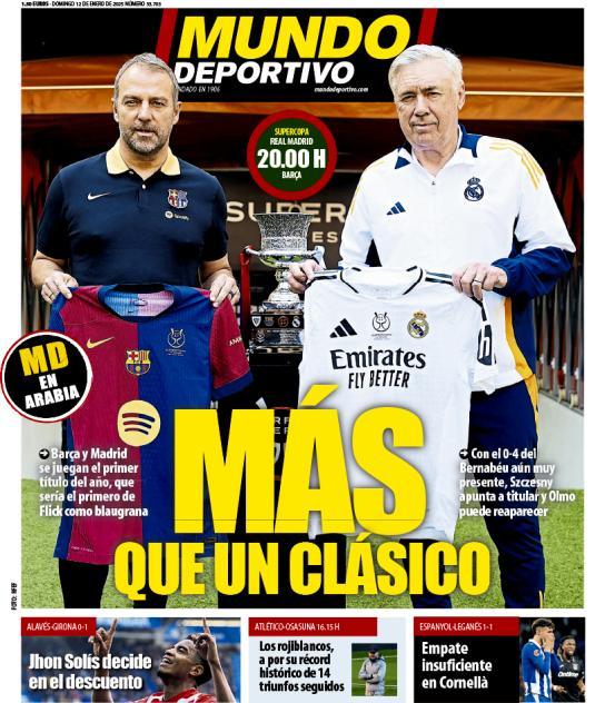 Buenos días. Hoy se juega la final de la Supercopa en Yeda, en partido que enfrenta al Real Madrid y al equipo cliente de Negreira, y vamos a empezar por llevar la contraria, de forma directa y frontal, al titular que al respecto nos suelta de buena mañana Mundo Deportivo. No es infrecuente que discrepemos con dicha publicación, eso también es verdad.