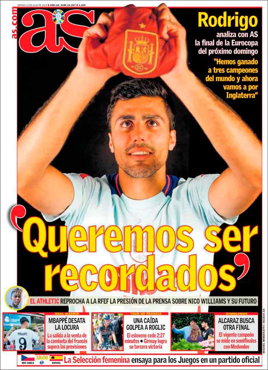 Los que viniesen de Raticulín también verían la primera plana de AS, que extrañamente menciona una de las trapacerías del Barça y su entorno mediático: “El Athletic reprocha a la RFEF la presión de la prensa sobre Nico Williams y su futuro”. Cómo será la cosa de evidente para que aparezca en las portadas.