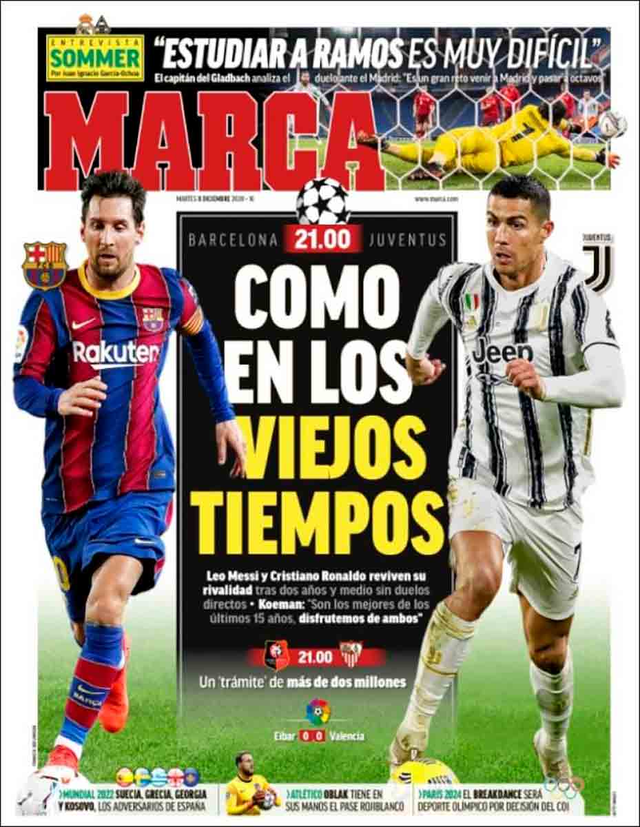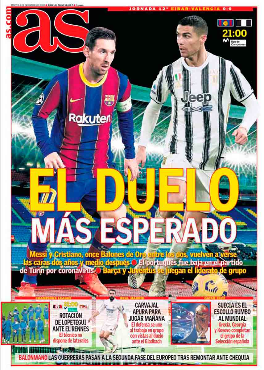 Cuando Cristiano vestía de blanco, amigos, no era generalmente considerado por los medios como un rival a la altura de Messi. Tuvo que remontar un 4-1 en Balones de Oro y llegar a igualarle para que se le considerase  globalmente como un adversario a la altura del argentino, y ni siquiera entonces hubo consenso respecto a que lo fuese. ¿Será quizás por la razón incluida al comienzo de este párrafo, es decir, precisamente porque vestía de blanco? Si nos atenemos a las primeras planas que se le dedican hoy, cuando ya no viste de blanco sino de blanquinegro, habrá que concluir algo parecido.
