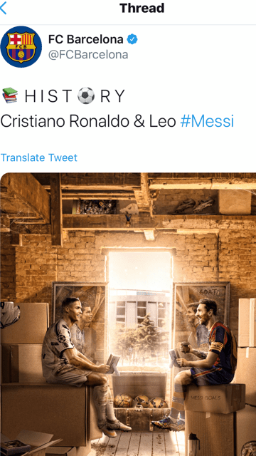 Incluso la cuenta oficial del Barça ha elevado a Cristiano hacia las alturas de Messi con un tuit que incluye un dibujo ilustrativo del encuentro en la cumbre. Es verdad que hay detalles que dejan claro, a poca atención que el espectador ponga, que Messi es supuestamente superior (sobre todo el acrónimo GOAT en la ventana de su lado), pero Cristiano es por fin tomado como un rival capaz de hacer siquiera una mínima sombra al shequetito. Este tuit habría sido impensable con Cristiano aún en el Madrid. Los valors no les habrían dado para tanto.