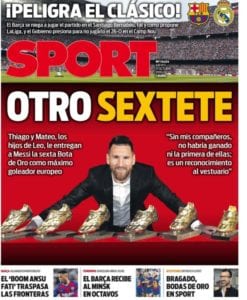 Messi recogió el galardón acompañado por su encantadora familia (no hay ironía aquí) y habló, claro. Una de las cosas más llamativas que dijo aparece reflejada en la primera plana de Mundo Deportivo. “Si no estás bien en Liga, no ganas la Champions”.
