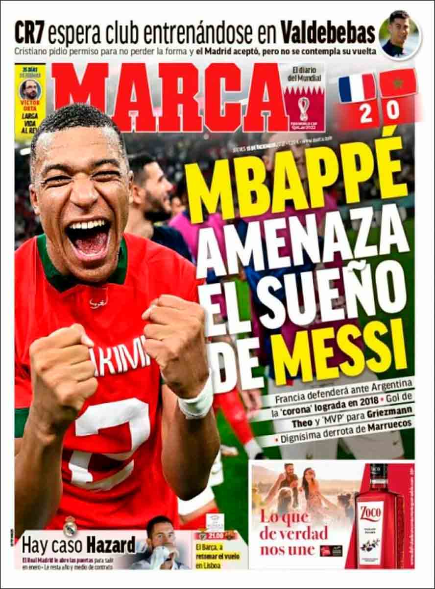 Las portadas, por lo que sea, prefieren no tratar asuntos espinosos y dan pábulo al sueño de aquellos que pergeñaron este ignominioso mundial: una final Messi-Mbappé.